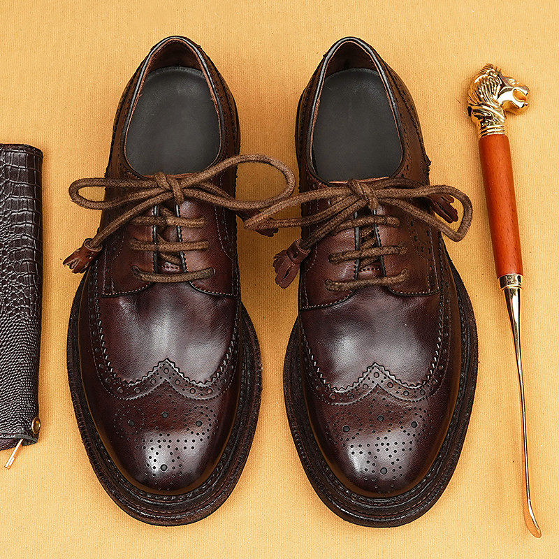 Men's Brown Perforated Leather Lace-Up Shoes – Stylish Casual and Business Shoes for Everyday Wear