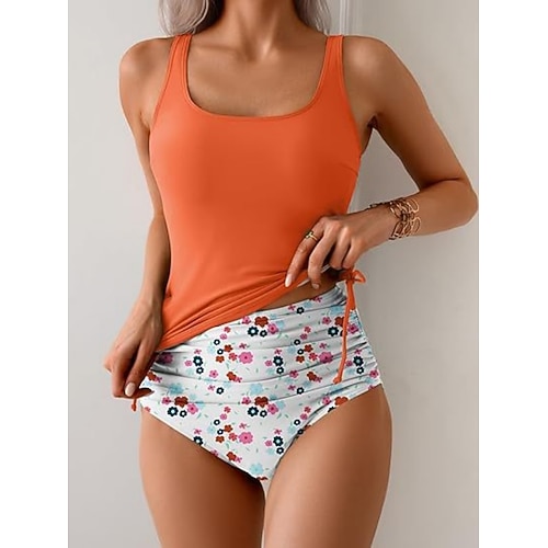 Per donna Costumi da bagno Tankini Gonna Costume da bagno Elegante Vacanza Floreale Grafico Scollo a V Senza Maniche Costumi da bagno