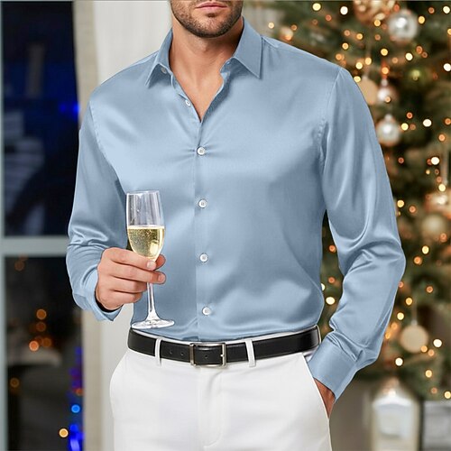 Per uomo Camicia Camicia in raso Camicia casual Camicia con Bottoni Semplice Formale Matrimonio Blu chiaro Nero Bianco Vino Manica Lunga Bavero Inverno Primavera Autunno Abbigliamento