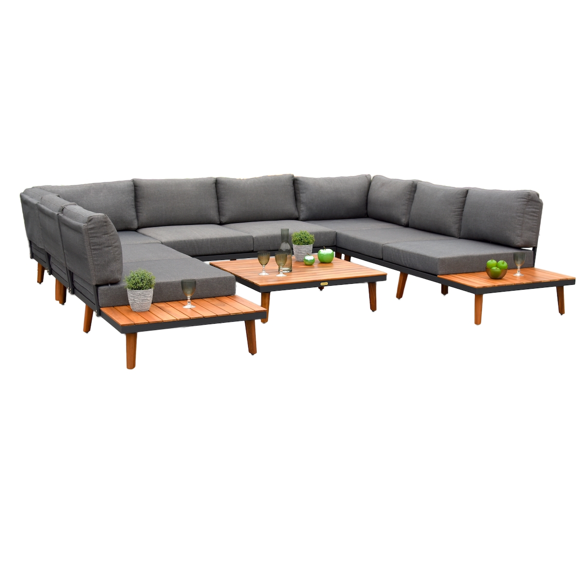Merxx Akropolis Lounge Set, Eckbank, Auflagen, Tisch, Aluminium/Akazie