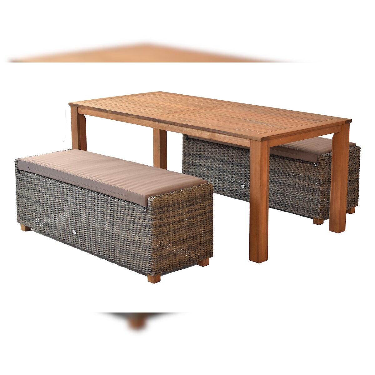 Merxx Toskana Gartenmöbelset 5tlg., 2 Bänke inkl. Auflagen, 1 Tisch, Akazien/Kunststoffgeflecht