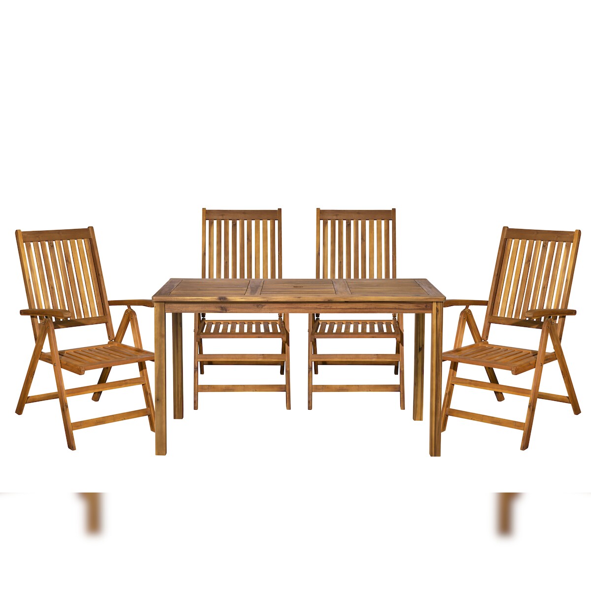 Möbilia 5-tlg. Garten-Sitzgruppe | 1 Tisch, 4 Stühle | klapp- und verstellbar | Akazie-Holz natur | 31020019 | Serie GARTEN