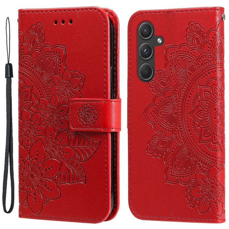 Samsung Galaxy A55 5G Plånboksfodral Blommönster Konstläder Ställ - Röd
