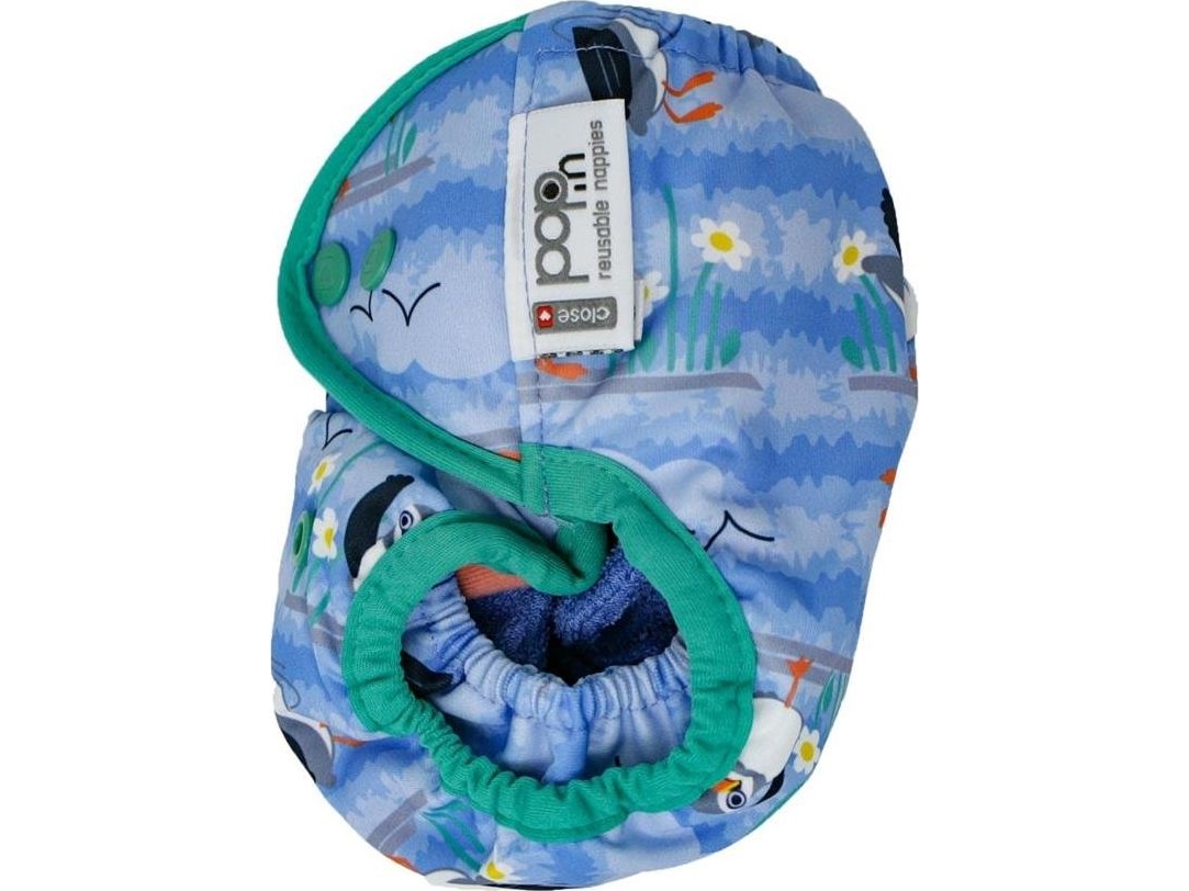 Lukk Caboo bleier Trekk, gjenbruksbleie Pop-in AIO Blå Lundefugl med trykknapper 4,5-16 kg, 1 stk.