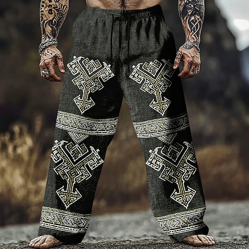 Per uomo Motivo Geometrico Vichingo Arte celtica Pantaloni Pantaloni Larghi Pantaloni casual Misura del girovita medio Vintage Retrò All'aperto Casuale Coulisse elastica in vita Pantaloni tipo lino