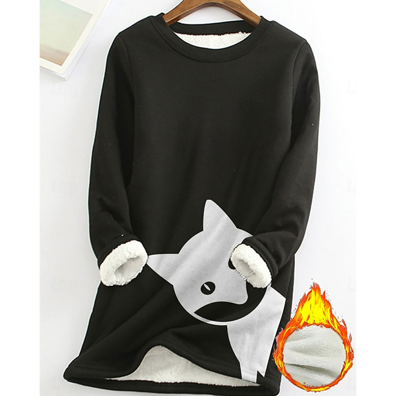 Women's Pullover Sweatshirt Animal Fashion Basic Casual Long Sleeve Crew Neck Long Tops Street Dailywear Casual Print Fleece Lined Black Yellow Pink Dark Pink Blue Fall Winter