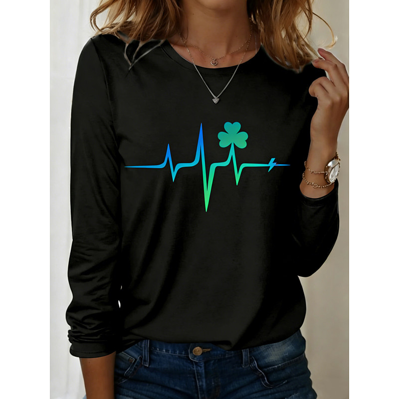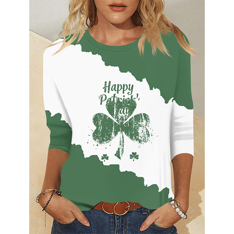 St. Patrick Women's T Shirt Graphic Shamrock Fashion Stylish Classic Long Sleeve Crew Neck Round Neck Regular Tops Daily Weekend Print Blue Black Green Summer Spring Fall