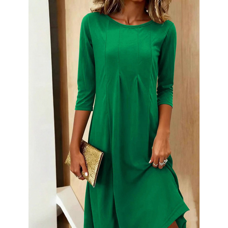 Women's Midi Dress Shift Dress Casual Daily Loose Fit Plain 3/4 Length Sleeve Crew Neck Black Wine Green Dark Blue Summer Spring Fall