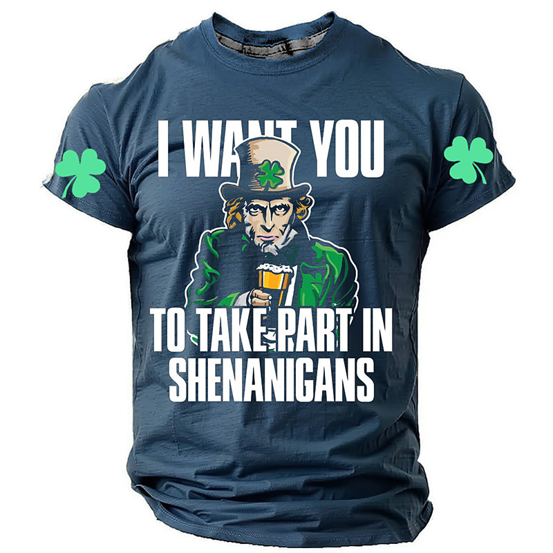 St. Patrick Men's Graphic Shamrock Oktoberfest Beer Lucky Irish T Shirt T shirt Tee Short Sleeve T shirt 3D Print Crew Neck Shirt Daily Designer Retro Vintage Sports Outdoor Holiday Going out Black