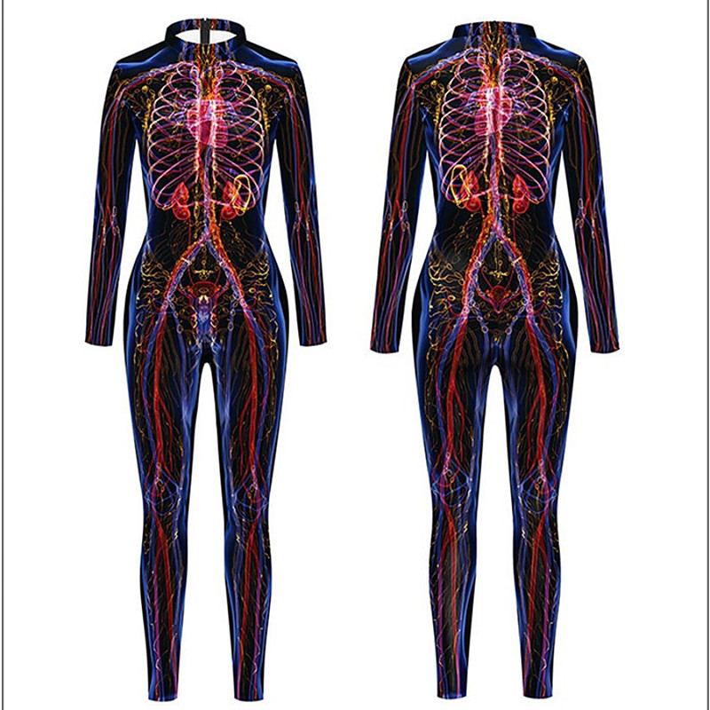 Patterned Zentai Suits Cosplay Costume Bodysuit Printing Carnival Costume Full Body Suit Men's Women's Boys' Sexy Costume Halloween 3D Skeleton Costume for Performance Party Masquerade Kid's Adults'