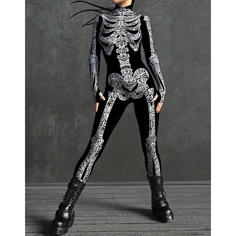 Skull Skeleton Bodysuit Halloween Group Couples Costumes Full Body Catsuit Scary Costume Men's Women's Boys' Kid's Adults' Performance Party Club Halloween Carnival Day of the Dead Easy