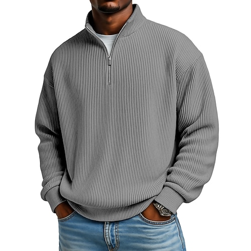 Per uomo Camicia di Velluto a Coste Testurizzato Casuale Vacanza Zip a un quarto Manica Lunga Moda Essenziale Tinta unica Cerniera Autunno Primavera Autunno Autunno Inverno Vestibilità comoda