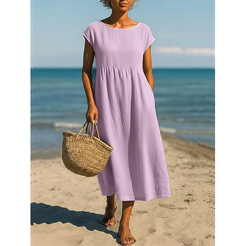 Per donna Abito Lungo Maxi Abito Misto cotone Abito a Tubino Moderno Quotidiano Vestibilità comoda Colore Puro Manica Corta Girocollo Neon verde Bianco Rosa Viola Estate