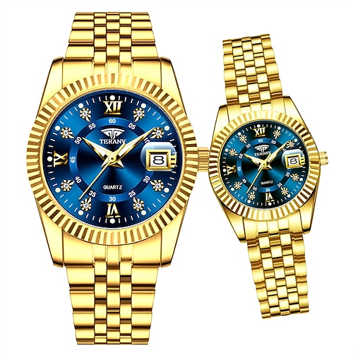 due nuovi orologi da polso al quarzo alla moda con quadrante romano per coppie, resistenza all'acqua IPX7, display luminoso del calendario, cinturino in lega - regalo ideale per appuntamenti informali