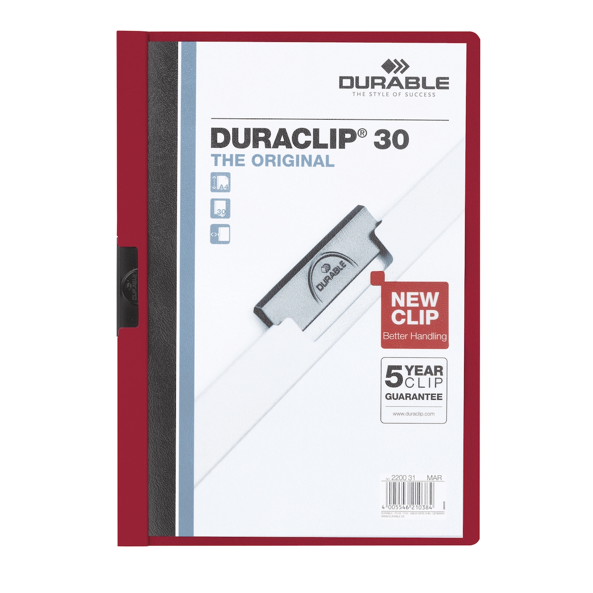DURABLE 220031 Klemmmappe DURACLIP 30 DIN A4 Hartfolie aubergine