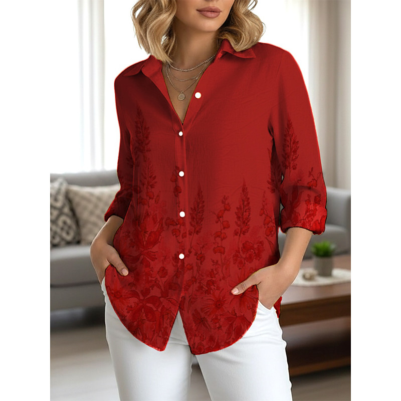 Women's Shirt Floral Elegant Daily Stylish Long Sleeve Shirt Collar Regular Tops Daily Holiday Buttons Print Red Blue Spring Fall