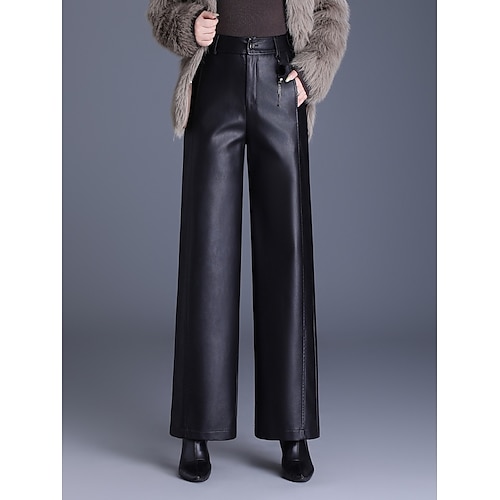 Per donna Gamba larga Chinos Moda Streetwear Essenziale Lunghezza intera Vita Alta Semplice Tasca Comodo Morbido Confortevole Micro-elastico All'aperto Vacanza Lavoro Nero Caffè Primavera Autunno