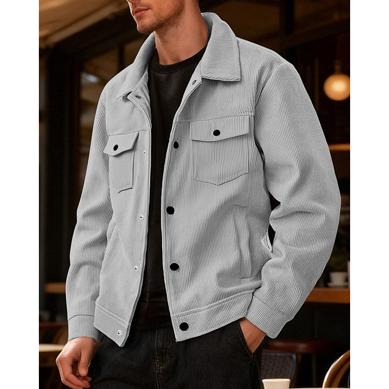 Men's Lightweight Jacket Corduroy Jacket Casual Jacket Work Jacket Outdoor Casual Pocket Fall Winter Color Block Streetwear Sports Outdoors Turndown Regular Apricot Black Brown Light Grey Army Green