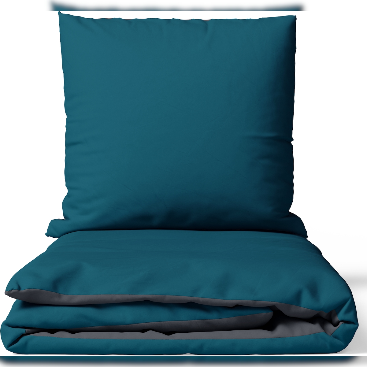 Leonado Vicenti Satin Bettwäsche 135x200 cm 100% Baumwolle Petrol Luxus Set Uni Wendeseite Anthrazit Kissenbezug 80x80 cm Reißverschluss 4 Teilig