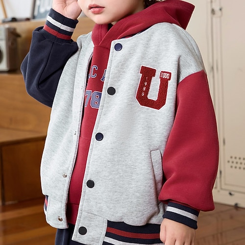 Kinder Unisex Baseball-Jacken Oberbekleidung Farbblock Langarm Comfort Knöpfe Weich Mantel Outdoor Mode Täglich Blau Grau Frühling Herbst Ab 4 Jahren