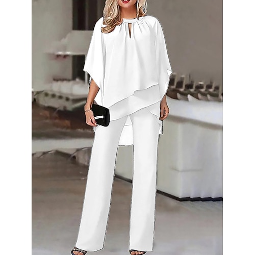 Per donna Elegante Moda Streetwear Set di Pantaloni Manica 3/4 Girocollo Tinta unica Casuale Quotidiano Nero Bianco Vino Estate Vestibilità regolare