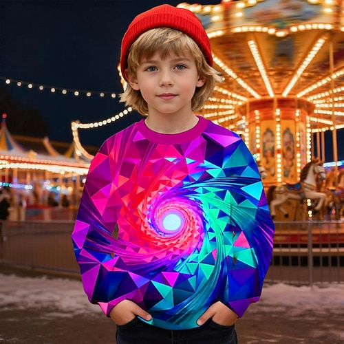 Jungen 3D Grafik Geometrisch Optische Täuschung Sweatshirt Langarm Frühling Herbst Mode Basic Kinder 4-12 Jahre Rundhalsausschnitt Outdoor Lässig Täglich Normale Passform
