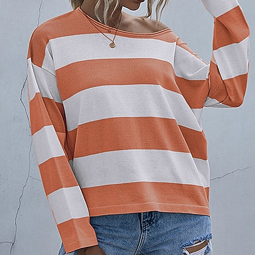 Per donna Felpa pullover Pullover Maglione Manica Lunga Top Athleisure Autunno A righe Leggero Escursionismo Vacanze Corsa abbigliamento sportivo Abbigliamento sportivo Blu Nero Arancione