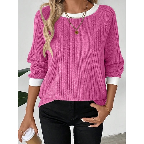 Per donna Felpa Casual Morbido Colore Puro A Coste Girocollo Lavorato a maglia Manica Lunga Top Regolari Maglia All'aperto Quotidiano Weekend Nero Rosa Autunno Inverno
