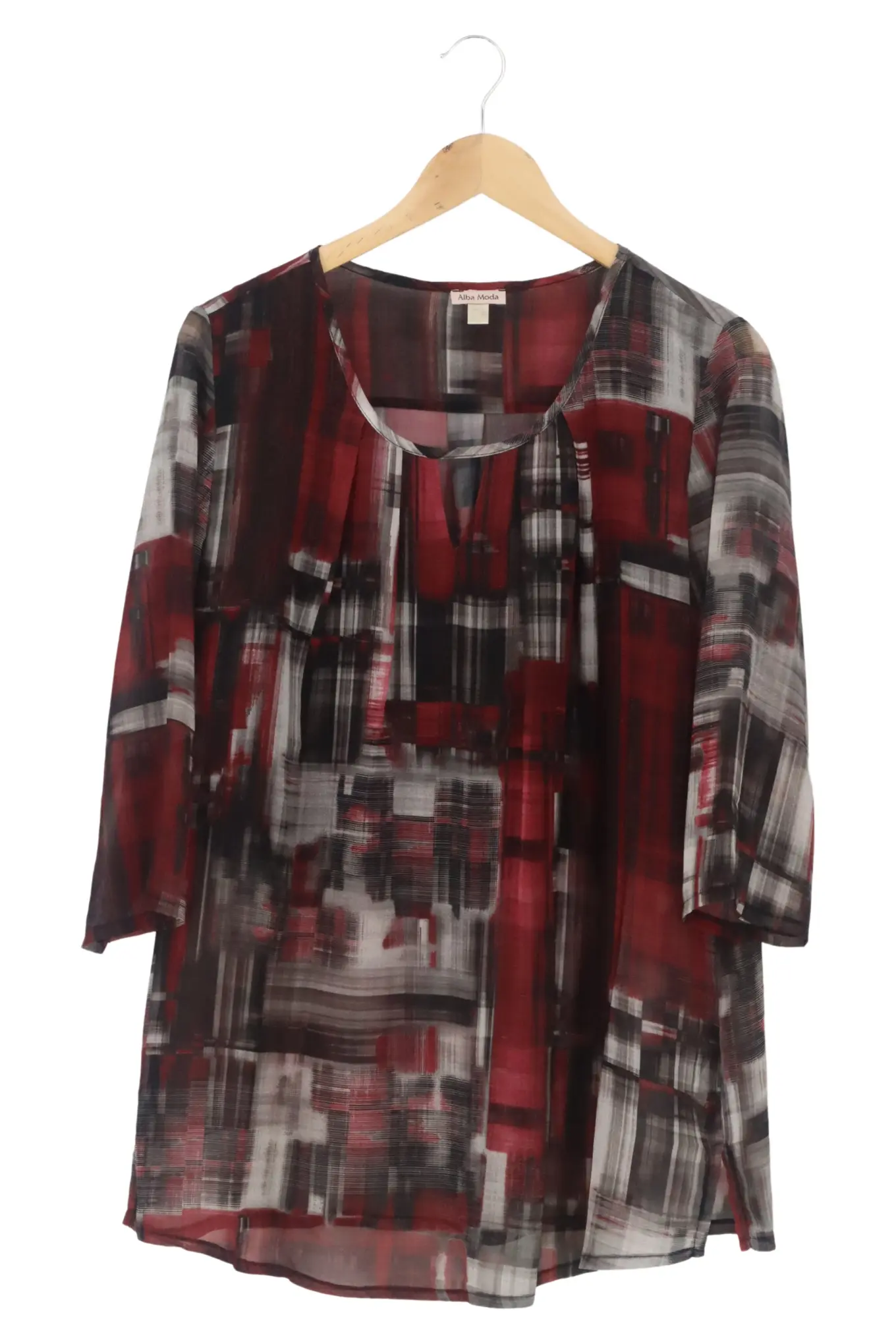 ALBA MODA Bluse Rot Kariert Gr. 44 Damen Elegant Vintage Look