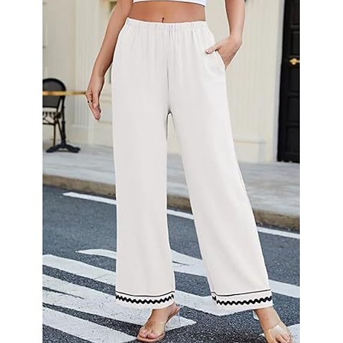 Damen Kunstbaumwollleinen Sommerhose Strandhose Urlaub Streetwear Lässig Volle Länge Mittlere Taillenlinie Blumen Tasche Bequem Unelastisch Täglich Outdoor Schwarz 1 # Weiß Rote Grün Sommer Frühling