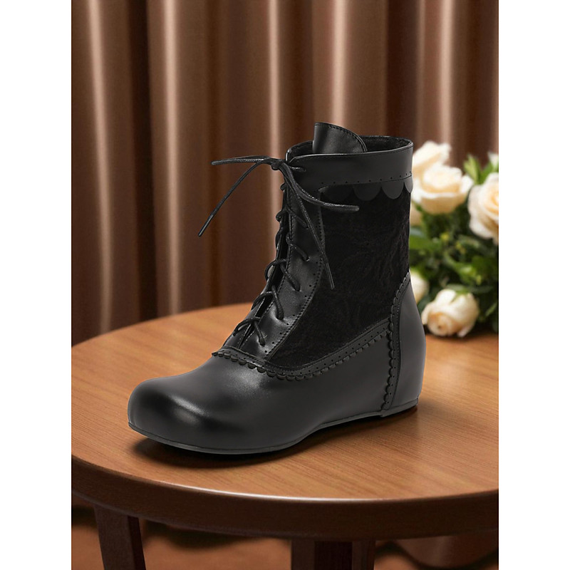 Women's Purple Lace-Up Ankle Boots with Embroidered Panels - 1900s Edwardian Victorian Style Flat Booties for Cosplay, Fall Festivals and Vintage-Inspired Outfits
