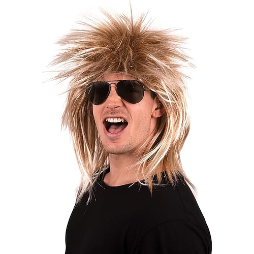 Parrucca di Carnevale Biondo Liscio Corto Parrucca sintetica da festival Martedì grasso Parata Capelli per costumi da cosplay per Da uomo