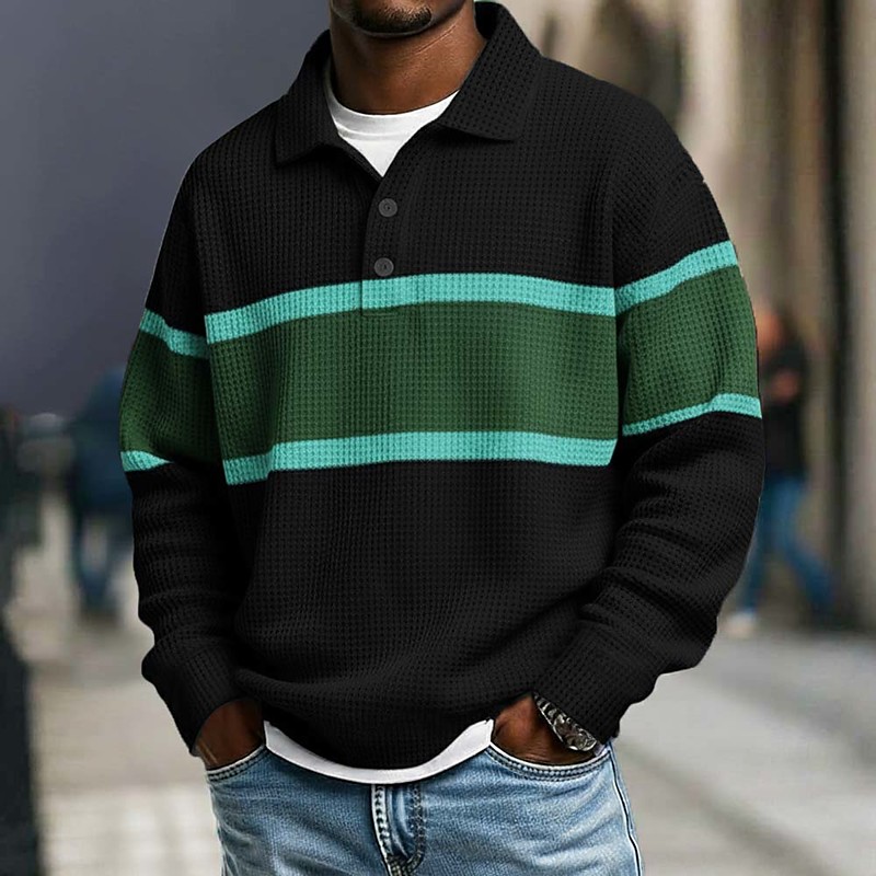 Men's Horizontal Stripes Waffle Polo Shirts Rugby Polo Textured Long Sleeve Polo Shirts Lapel Sportswear Casual School Athleisure Daily Wear 3D Print Spring Fall Winter Blue Red Purple