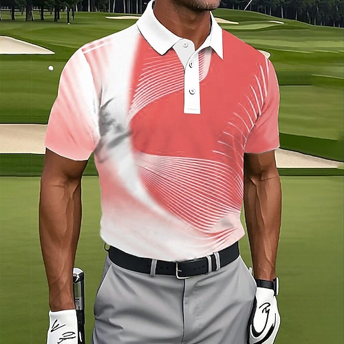 Herren Geometrisch Polo Golf Poloshirts Kurzarm Polo-Shirts Revers Lässig Athleisure 3D-Druck Knöpfe Sommer Blau Rote Purpur