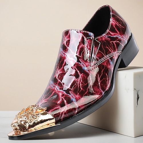 scarpe da uomo in pelle rossa lucida con punte e dettagli borchiati: calzature firmate per occasioni formali di alto livello