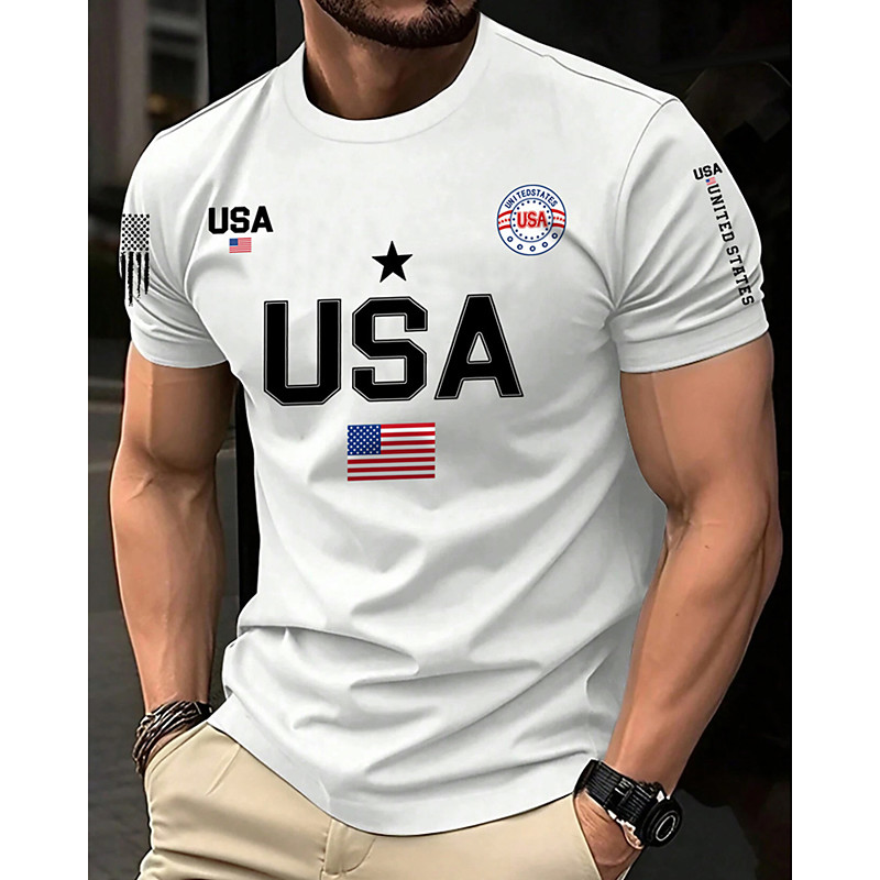 Men's T Shirt Tee Short Sleeve Shirt Tee Top Short Sleeve Crew Neck Summer American US Flag Fashion Designer Basic Print Vacation Street Going out Blue Black White Top Tee for Men
