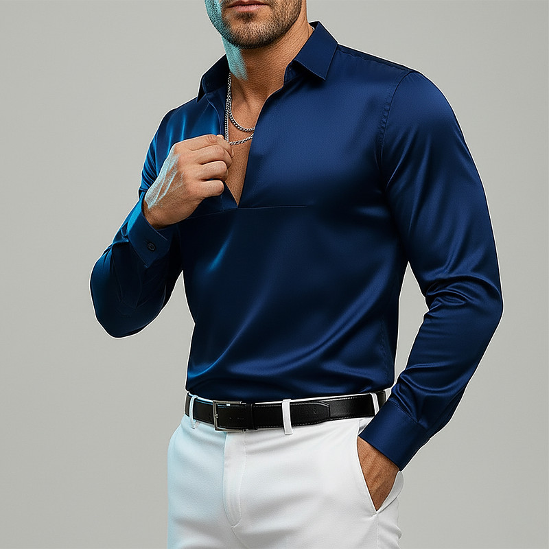 Men's Shirt Satin Shirt Dress Shirt Casual Shirt Button Up Shirt Prom Shirt Plain Formal Wedding Black Navy Blue Long Sleeve V Neck All Seasons Clothing Apparel