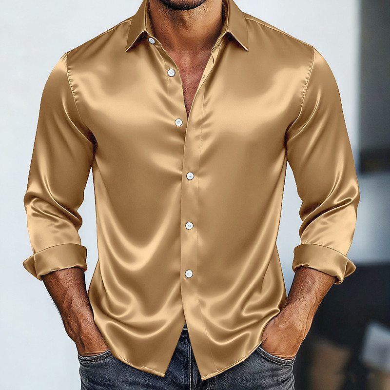 Men's Shirt Satin Shirt Dress Shirt Casual Shirt Button Up Shirt Prom Shirt Plain Formal Wedding Light Blue White Royal Blue Gold Long Sleeve Lapel All Seasons Clothing Apparel