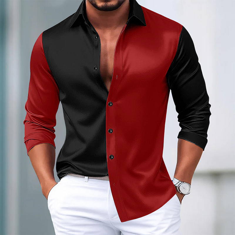 Men's Shirt Satin Shirt Dress Shirt Casual Shirt Button Up Shirt Prom Shirt Color Block Party Casual Black Red Gold Long Sleeve Lapel Spring Fall All Seasons Clothing Apparel