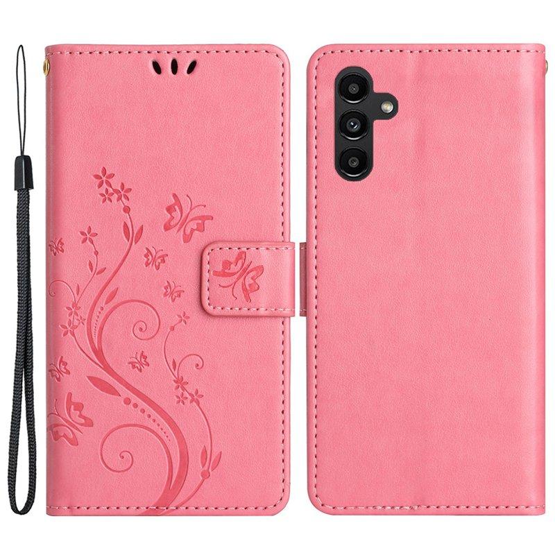Samsung Galaxy A35 5G Fodral Äkta Läder Fjärilsdesign - Rosa