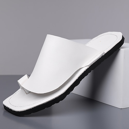 sandali slip-on minimalisti da uomo: tomaia in morbida similpelle, facili da indossare e togliere, stile estivo leggero, comode calzature casual per la spiaggia, il resort e l'uso quotidiano