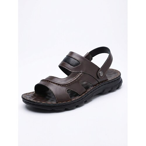 Sandali da uomo marroni in similpelle con fibbia, traspiranti, comodi per la spiaggia e le vacanze.