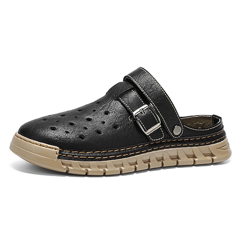 Sandali da uomo marroni con cinturino e fibbia, senza tallone, traforati, casual, comodi e traspiranti, ideali per l'estate, per viaggi, vacanze, tempo libero all'aperto e per l'uso quotidiano.
