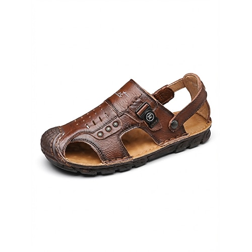 Sandali da pescatore da uomo marroni in similpelle, a punta chiusa, con cinturino regolabile, comodi da spiaggia per vacanze al mare, viaggi in località balneari, tempo libero in resort, passeggiate all'aperto e abbigliamento casual estivo.