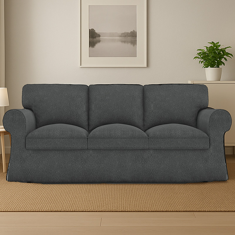 Stretch Sofa seat Cushion Cover Slipcover Elastic Couch Armchair Loveseat 4 or 3 Seater Grey Plain Solid Soft Durable Washable