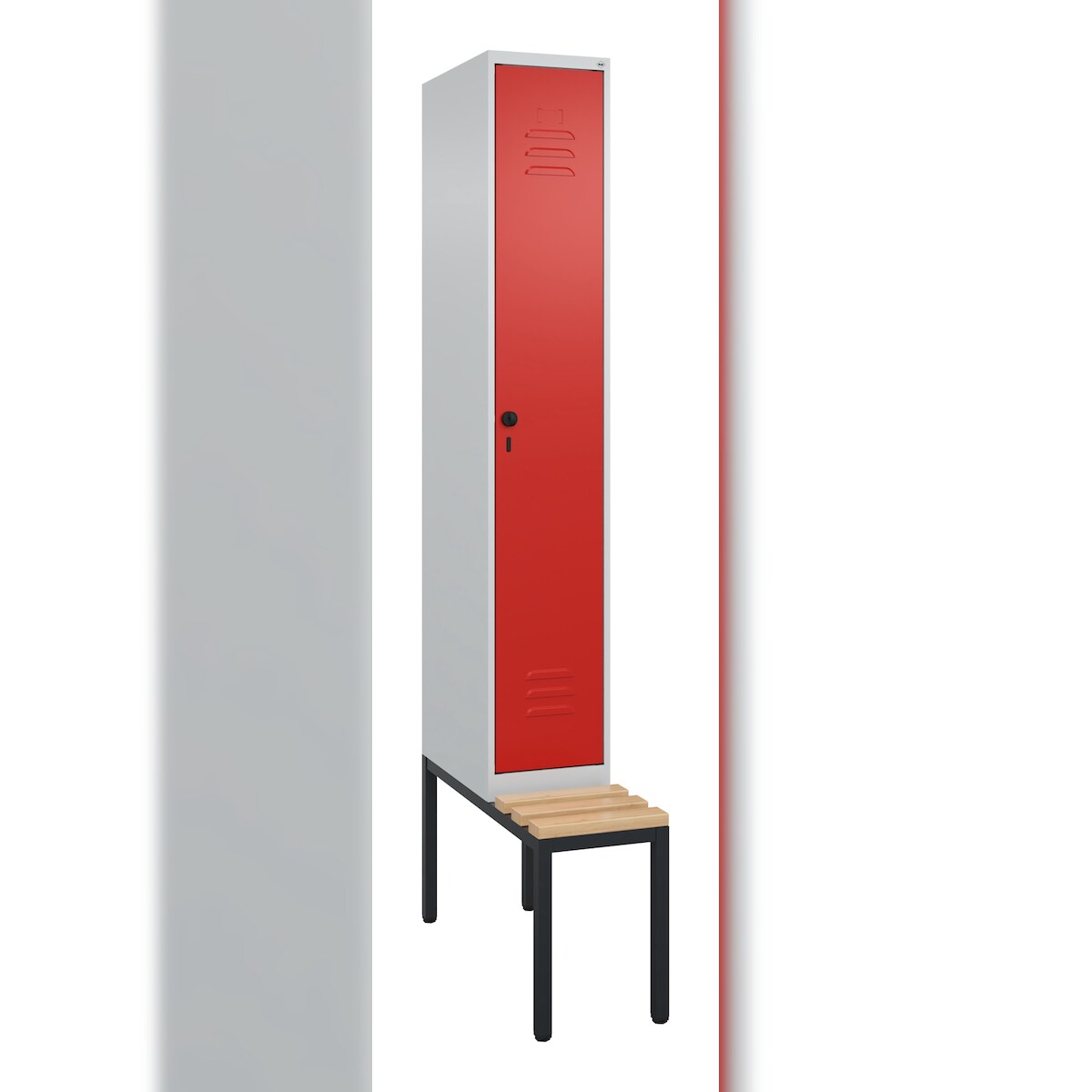 C+P Spind Classic PLUS, Buche untergebaute Sitzbank 1 Abteil, HxBxT 212x30x82cm, Sicherheitsdrehriegel, Hellgrau/Rot von PROREGAL