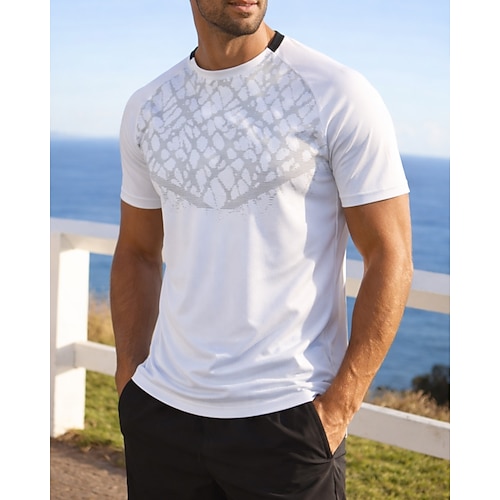 Per uomo Grafico T-shirt da corsa Maglia a compressione Maglia atletica Sport in alto Estate Manica Corta Asciugatura Rapida Traspirante Allenamento in Palestra Camminata Jogging Blu Nero Bianco