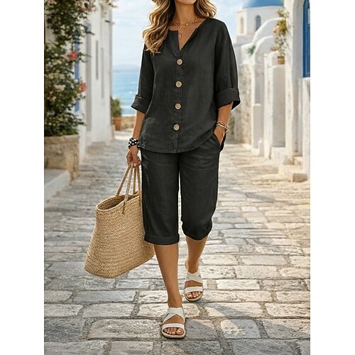 Per donna Set coordinati Camicie di cotone e lino Set Camicia Shorts Shorts da Spiaggia Pantaloncini casual Maglietta Mischia e abbina Vestito 2 pezzi Sport Streetwear Semplice Quotidiano Manica Lunga