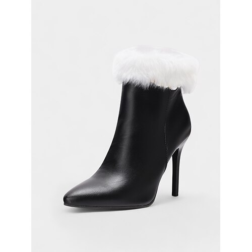 stivaletti invernali da donna in similpelle nera con rifiniture in pelliccia e tacco a spillo, stile chic e comodo, perfetti per l'inverno, le uscite in ufficio e le feste