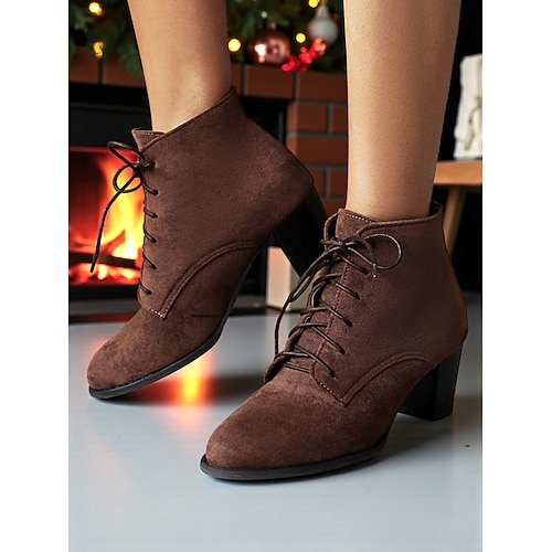 stivaletti da donna in pelle scamosciata marrone con lacci e tacco a blocco – stile di ispirazione vintage, perfetti per l'autunno, l'inverno e le uscite quotidiane